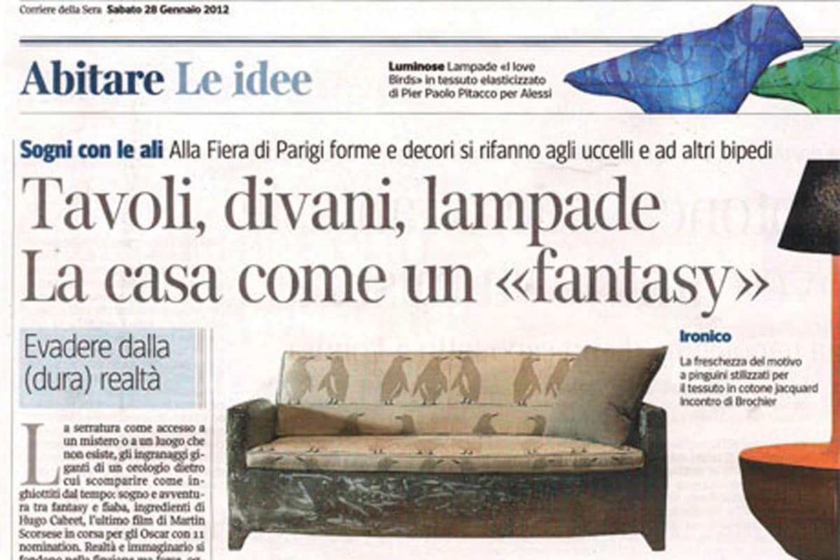 House Beautiful – November 2011 issue features a retro chic apartment designed by Heather Moore. The inspiration for the unusual color palette of this apartment came from the bright pumpkin-y orange fabric by Brochier that’s on the slipper chairs.